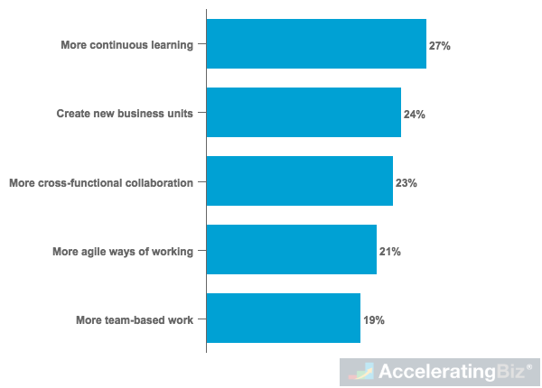 - Organizational Restructuring – Some respondents also think that organizational restructuring would have to be made, potentially creating new business units (24%) and creating a more agile, dynamic environment (21%)