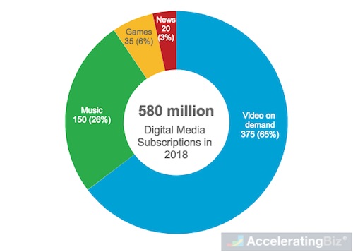 - Global Digital Subscription – Deloitte predicts digital media subscription will reach 580 million by end of 2018