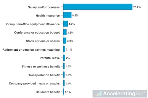 - Financial Priority – Seven in ten developers surveyed by Stack Overflow identified salary and bonuses as top compensation and benefits priority for 2018