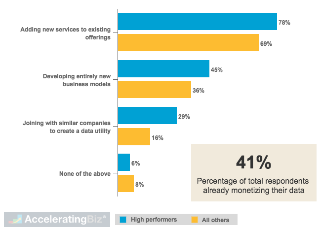 High-performing businesses monetize data by adding new services to existing offerings and developing new business models, according to 2017 McKinsey study