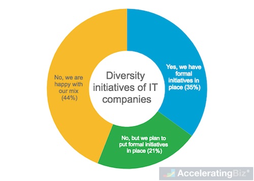 - No Diversity Programs – 44% do not have diversity initiatives, stating their contentment in current mix in their workplaces