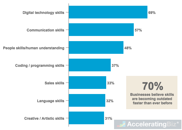 - Rapidly Evolving Skills – Businesses surveyed by Vodafone believe current workplaces are rapidly evolving, with seven in ten agreeing that skills are becoming outdated faster than ever before