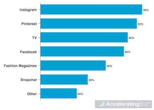 - Top Online Channels – 56% of respondents in Facebook IQ survey used Instagram for fashion product discovery, followed by Pinterest (53%) in 2017