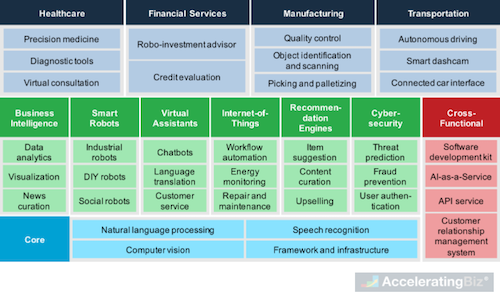 Huge variety of core, functional and industry-specific AI applications are increasingly being deployed across industries