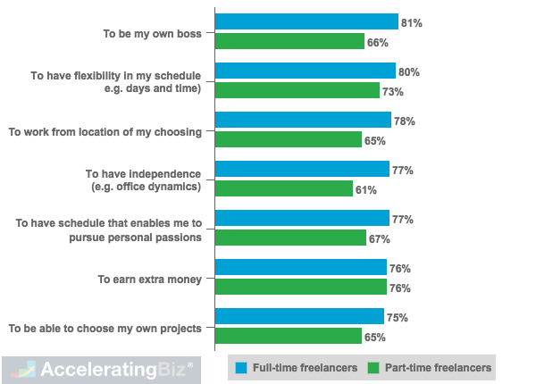 - Flexible Schedule – Ranked second among both full-time and part-time freelancers as major motivation for freelancing