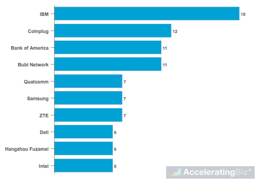 - Top Asian Firms – Asian companies Coinplug (12), Bubi Network (11), Samsung (7), ZTE (7), and Hangzhou Fuzamei (6) also part of top ten