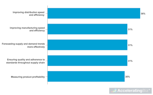 - Faster and More Efficient Supply Chains – More than one-third (36%) of companies surveyed identified improving distribution speed and efficiency as top supply chain priority, as consumers demand faster deliveries and better customer service, with 31% also selecting increased manufacturing speed and efficiency