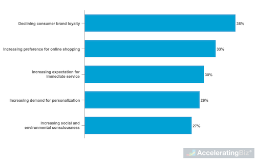 - Key Drivers – Include demand for greater value in goods and services, intensifying competition, proliferation of new online channels brought about by expanding connectivity and mobile device use, increasing preference for near real-time delivery, and growing demand for product experience exclusivity and uniqueness