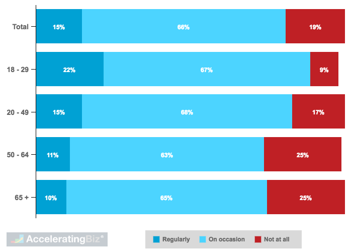- Adults Watching Recommendations – Roughly four in five respondents in Pew Research Center survey watch videos suggested by Youtube’s artificial intelligence (AI) recommendation engine in 2018, with 15% saying they do so regularly