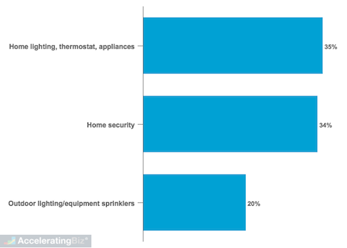 - Home Security – 34% connect and use their devices to control home security products