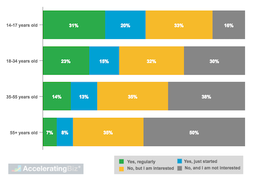 - Potential New Users – More than third of online consumers across all age groups have not used virtual assistants, but are interested in the technology